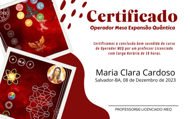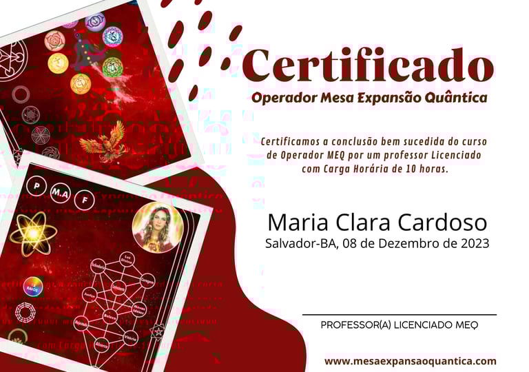 Você receberá da sua Professora(o) uma mesa radiônica MEQ, cristais, pêndulo, apostila on-line ou impressa e certificado internacional de conclusão do curso.